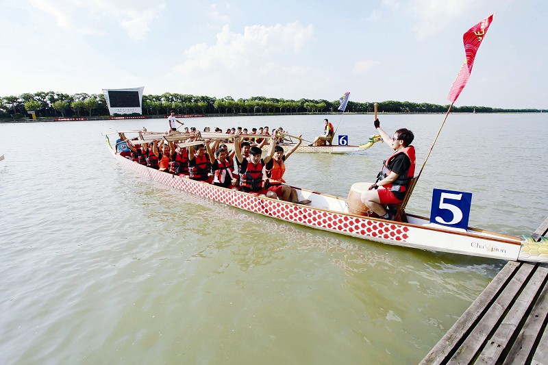 本次龍舟賽為500米直道競速,比賽均設(shè)6條航道,30支龍舟隊(duì)通過預(yù)賽競速,10支隊(duì)伍分為兩組進(jìn)入決賽的最后角逐。來自建設(shè)交通系統(tǒng)34家單位組成的30支龍舟代表隊(duì)在此一較高下。13點(diǎn)45分,隨著發(fā)令信號(hào)槍響,一條條龍舟沿著500米的賽道向前沖去,似蛟龍出水,如百舸爭流,劈波斬浪、奮勇爭先。經(jīng)過激烈的角逐,代表中鐵上海工程局集團(tuán)參賽的“中鐵上海先鋒號(hào)”龍舟隊(duì)以小組第一的成績順利進(jìn)入決賽。在接下來的決賽中,集團(tuán)公司龍舟代表隊(duì)奮力拼搏,最終以2秒之差遺憾獲得亞軍,但2分33秒已經(jīng)創(chuàng)造了隊(duì)伍參加龍舟賽以來的歷史最好成績。