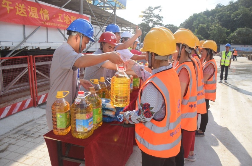 ☆6月6日,成都軌道交通8號線6標項目部工會向奮戰(zhàn)在高溫下的一線員工和協(xié)作隊伍送去了濃濃的節(jié)日祝福。(王紅社)