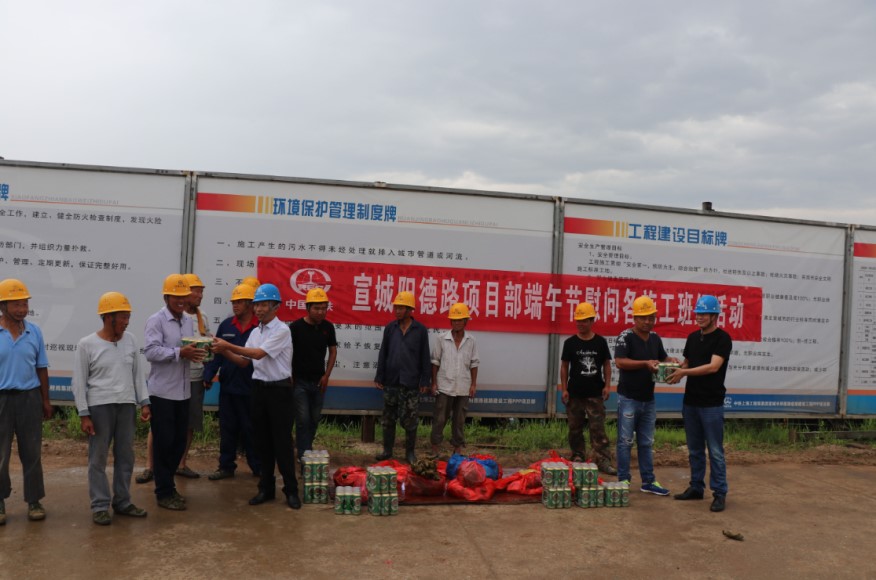 又訊,6月6日上午,宣城陽德路項目部開展“情系農民工、端午節(jié)慰問活動”,項目部領導來到施工現場為奮戰(zhàn)在一線的100多名農民工送去了粽子、豬肉、啤酒等慰問品,送去了項目的溫馨祝福,讓堅守在施工一線農民工兄弟真正感受到項目對他們的關愛之情和濃厚的節(jié)日氣氛。(唐順林)