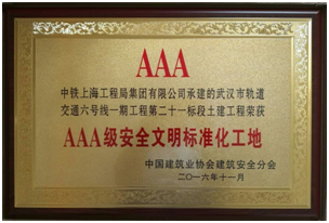 11月30日, 2016年度全國“AAA級安全文明標(biāo)準(zhǔn)化工地”表彰大會在安徽合肥召開,公司承建的武漢軌道交通六號線一期第二十一標(biāo)段土建工程喜獲本年度“AAA級安全文明標(biāo)準(zhǔn)化工地”。武漢市軌道交通六號線一期第二十一標(biāo)段土建工程位于武漢市東西湖區(qū)金山大道,包括環(huán)湖西路站、金銀湖停車場以及出入場線區(qū)間,合同總造價50258萬元。自開工建設(shè)以來,項目部高度重視現(xiàn)場文明施工和標(biāo)準(zhǔn)化管理,施工過程中嚴(yán)格落實(shí)行業(yè)各項管理制度和中鐵上海局各項安全管理內(nèi)控制度。項目部以安全生產(chǎn)責(zé)任制為核心,建立健全安全文明施工管理制度及保證體系,狠抓全員安全教育培訓(xùn)和班組長安全質(zhì)量責(zé)任制工作,通過全員安全教育、安全技術(shù)交底、開辦農(nóng)民工夜校、班前安全講話、事故案例學(xué)習(xí)、月度大檢查等多種形式,營造濃厚的安全生產(chǎn)氛圍,提高員工安全質(zhì)量意識和文明施工意識,確保現(xiàn)場安全生產(chǎn)。
