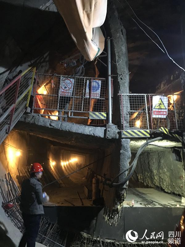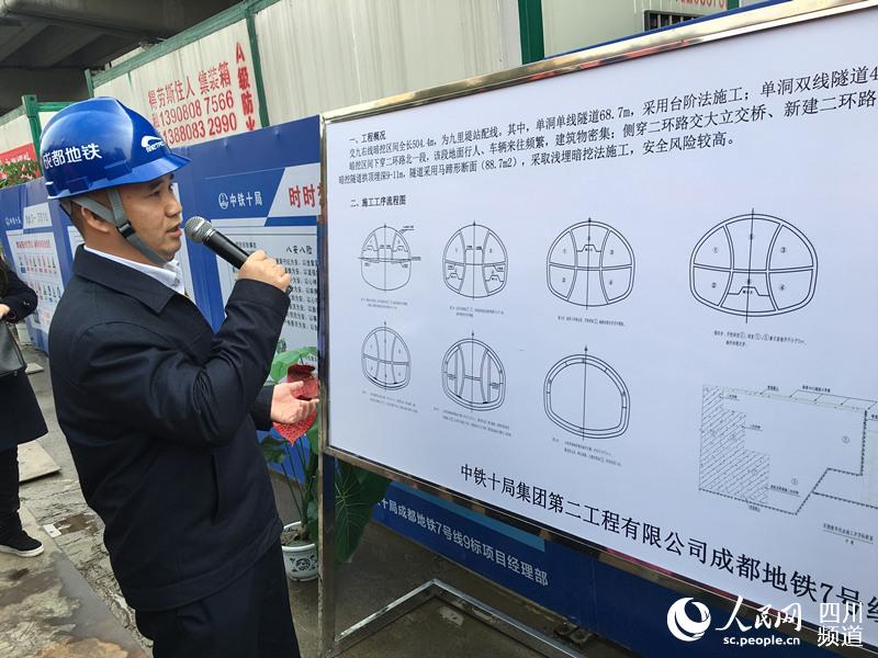 在成都二環(huán)路北一段高架橋的下方,地鐵七號線西南交大站—九里堤站的隧道正在施工,橋基從隧道旁“擦肩而過”,最近的地方僅有2.8米。為了保證路面交通暢通和高架橋的穩(wěn)定,地鐵施工放棄盾構(gòu)機,首次采用雙側(cè)壁導坑法分六步,人工開挖。
