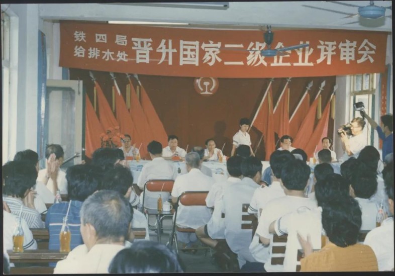企業(yè)升級是國家“七五”期間的中心任務(wù),圍繞著“抓管理、上等級、全面提高素質(zhì)”的工作要求,全處廣泛宣傳發(fā)動。從加強基礎(chǔ)工作入手,成立領(lǐng)導(dǎo)小組和企管辦,圍繞安全、質(zhì)量、效益等重點,廣泛開展標準化、計量、能耗、檔案、普法、全面質(zhì)量管理、班組建設(shè)等專項達標升級。機關(guān)各部門、各單位對照“方針目標任務(wù)展開表(類似于現(xiàn)在管理矩陣、責任清單)開展資料“補強”工作。1990年,給排水工程處通過鐵道部評審組考核驗收,成為全局第一家晉升國家二級企業(yè)的單位,全處職工每人都晉升了一級標準工資,更重要的是剛剛成為獨立法人不久的給排水處整體管理理念和綜合素質(zhì)有了顯著提升。處相繼榮獲全國五一勞動獎狀、全國先進施工企業(yè)等榮譽,成為名噪一時的鐵四局“四小龍”之一,無論是企業(yè)管理、經(jīng)濟效益還是員工風貌,都成為全局標桿。
