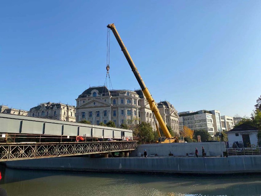 上海光復(fù)西路新建工程項目光復(fù)西路橋首片預(yù)制小箱梁架設(shè)完成