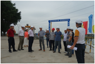趙劍一行依次查看了新建三夾橋、防洪工程的施工現(xiàn)場,聽取了項目負責人對工程概況、進度計劃及施工重難點的匯報。趙劍雄對鶴山市沙坪河綜合整治工程項目現(xiàn)場安全防護、文明施工、形象宣傳等給予了充分肯定,并要求項目部嚴把安全質量關,充分利用施工黃金季節(jié)加快施工進度,確保在合同工期內完成工程任務,早日造福鶴山人民。