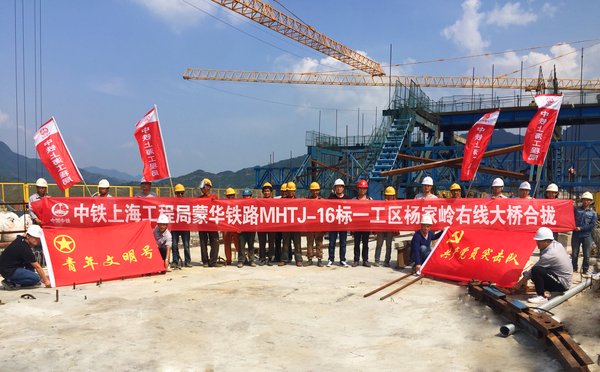 6月20日,由中鐵上海工程局承建的蒙華鐵路楊家?guī)X大橋右線最長連續(xù)梁順利合龍,標(biāo)志著蒙華鐵路楊家?guī)X大橋右線合攏段澆筑完成。